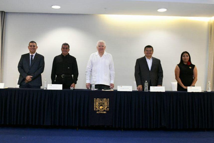 En representación del rector de la UNACH, Dr. Oswaldo Chacón Rojas, asistió el Dr. Juan Enrique Quintana; así como el Dr. Jorge Tadeo González Estrada, encargado de la Dirección de la Escuela de Ciencias Jurídicas de la Frontera Sur; el Dr. Mario Humberto Hernández Gómez, padrino de generación; y la Mtra. Sofía Esmeralda Patiño López, encargada de la Secretaría Académica.