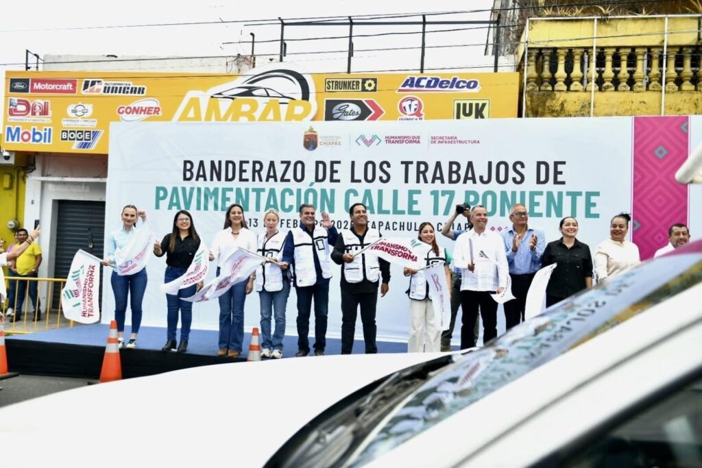 Con la presencia de la diputada y presidenta del Congreso estatal, Alejandra Gomez Mendoza y los diputados Elvira Catalina Aguiar Álvarez, Fredy Escobar, el alcalde de Tapachula, agradeció el respaldo del gobernador Eduardo Ramírez Aguilar, la puesta en marcha de los trabajos de pavimentación y servicios integrales de agua potable, drenaje y alumbrado, de la 17ª. calle Poniente y Oriente, de la 8ª. a la 15ª. avenida Norte “una avenida que desde hace 40 años no ha recibido atención a pesar de que hasta hace algunos años es la Carretera Internacional que nos lleva a Guatemala, por lo tanto es una de las vialidades más importantes, al cruzar la ciudad de un lado a otro”.