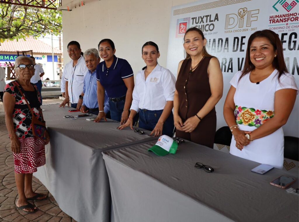 Durante esta jornada, la presidenta honoraria del SDIF Tuxtla Chico, Karla del Toro de Gamboa acompañada de la delegada del DIF región X Soconusco, Gladys Gabriela Blas Santiago, la directora del DIF municipal, Stephania Urbina de Coss, destacó que desde el Gobierno que encabeza el Dr. Eduardo Ramírez Aguilar, con el apoyo de la señora, Sofía Espinoza Abarca y la directora general del DIF, Ana Granda González, se agradecen estas acciones que buscan mejorar la calidad de vida de las personas.