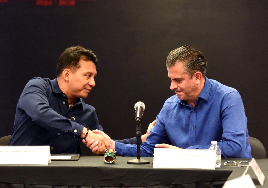 En cumplimiento a la política de fortalecimiento institucional en materia de seguridad, el presidente municipal de Tapachula, Yamil Melgar Bravo, participó junto al director general del Centro Estatal de Control y Confianza Certificado del Estado de Chiapas, José Alonso Llaven Villarreal, en la firma del Convenio de Coordinación entre el Centro Estatal de Control y Confianza y el Ayuntamiento de Tapachula.