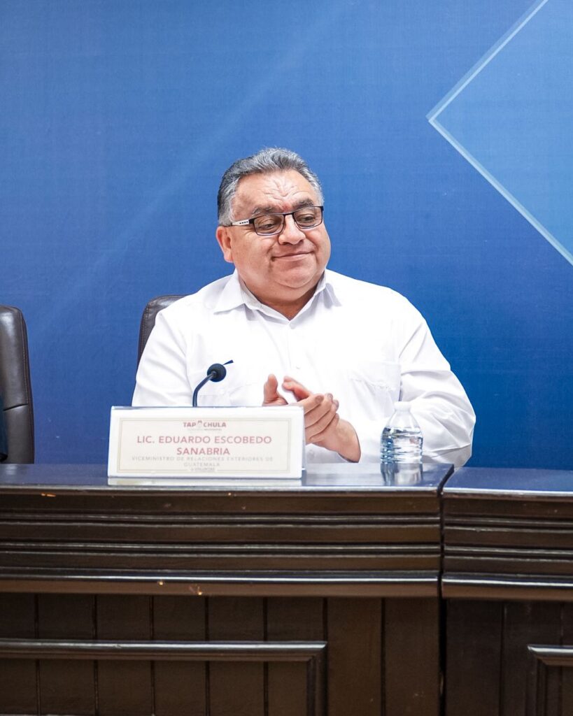 Con el propósito de refrendar los lazos de cooperación y coordinación institucional, el Gobierno Municipal de Tapachula recibió al viceministro de Relaciones Exteriores de Guatemala, Eduardo Escobedo Sanabria, así como a la embajadora Jessica Mendoza Barquín y personal del Consulado de Guatemala en nuestra ciudad.