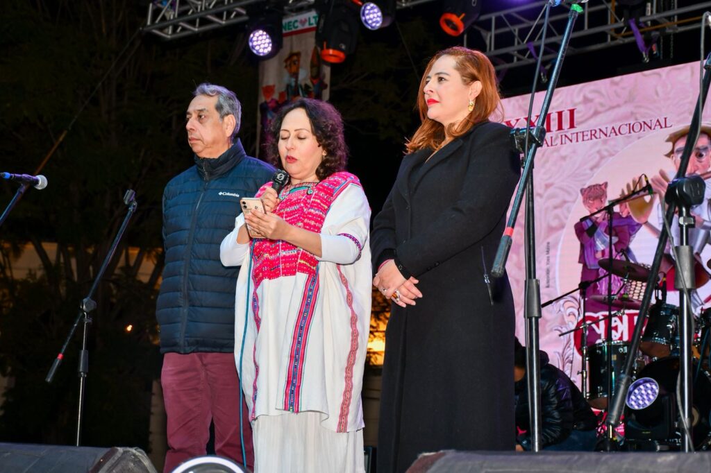 En su mensaje, reconoció el trabajo de la directora general de Coneculta, Angélica Altuzar Constantino, y del Coordinador de Enseñanza y Fomento Artístico, Cicerón Aguilar Acevedo, quienes, dijo, han contribuido de manera decisiva a que este encuentro cultural acerque el arte a todo el estado. La presidenta destacó que Chiapas continúa consolidándose como un referente nacional en actividades artísticas y culturales.