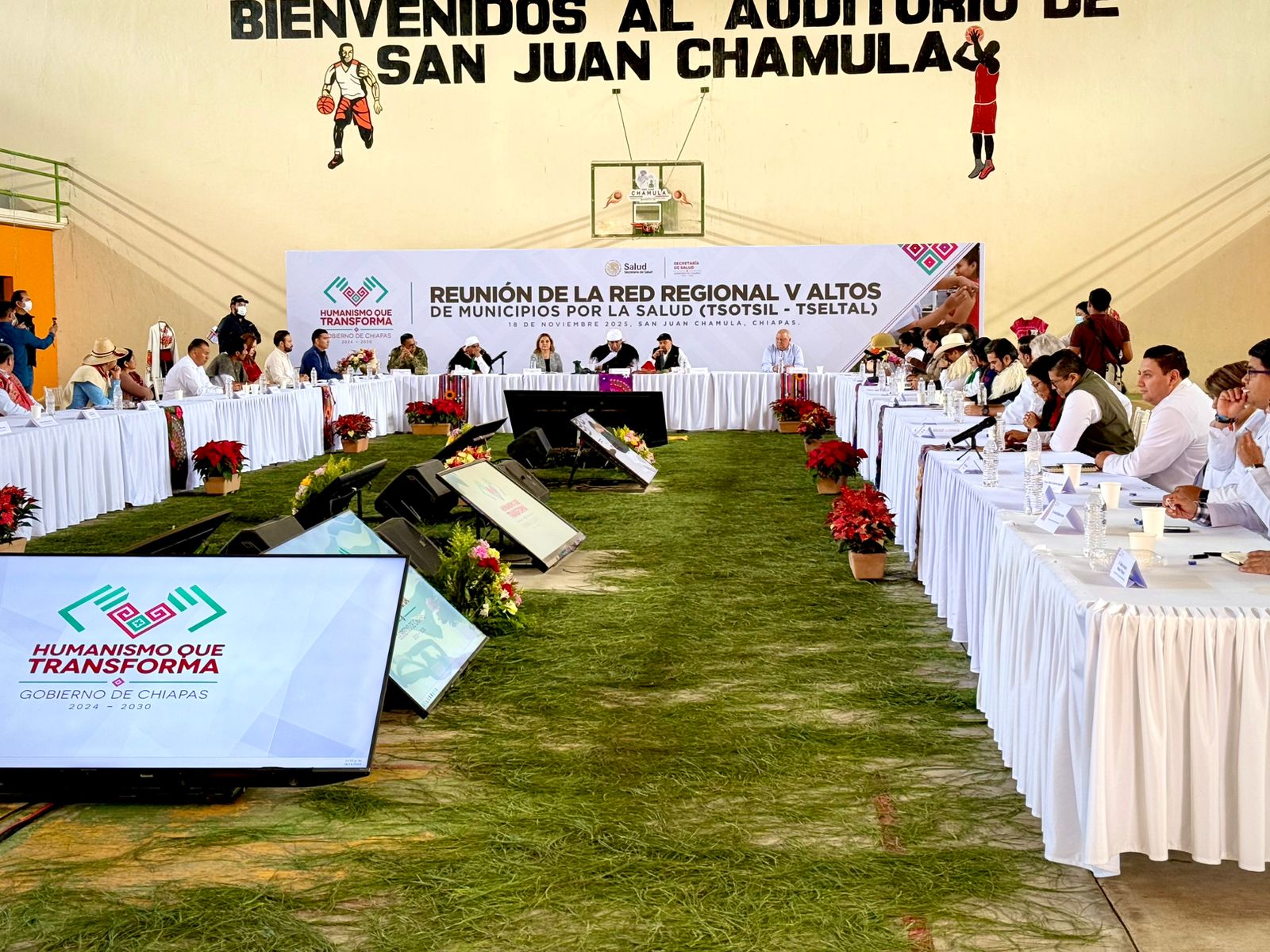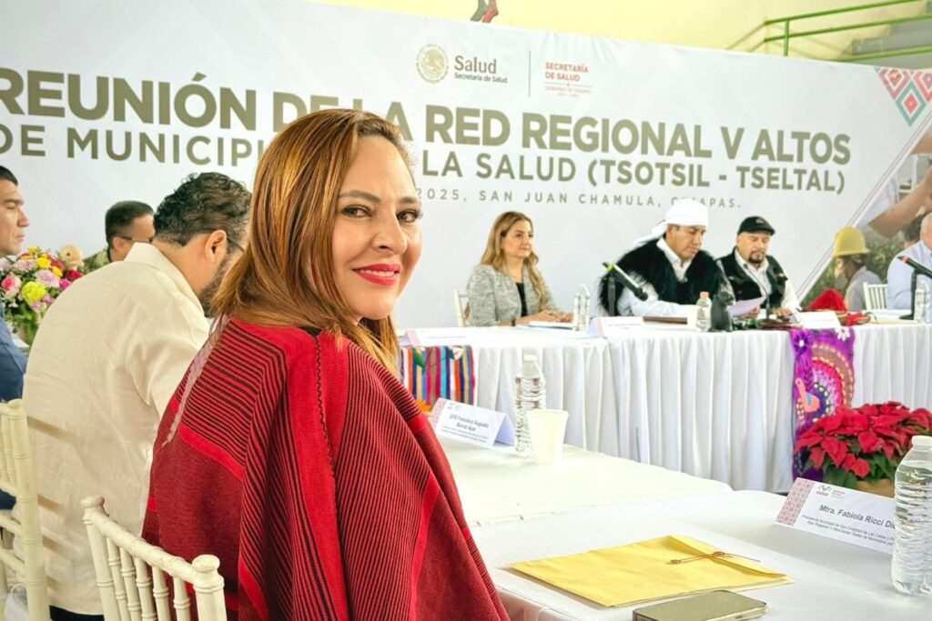 San Cristóbal de Las Casas, 18 de noviembre de 2025.- La presidenta municipal, Mtra. Fabiola Ricci Diestel, junto con la regidora Laura Gabriela Muñoz Montoya, presidenta de la Comisión de Salubridad y Asistencia, participó en la reunión de la Red de Municipios por la Salud (Tsotsil-Tseltal), encabezada por el gobernador de Chiapas, Dr. Eduardo Ramírez Aguilar. En este encuentro se congregaron presidentas y presidentes municipales de la región para coordinar esfuerzos en materia de salud pública.