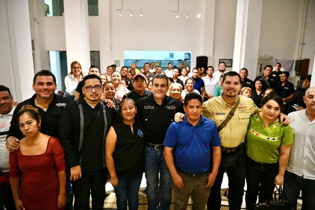 Tapachula, Chiapas.– En el marco de la estrategia de seguridad impulsada por el Gobierno del Estado que encabeza el gobernador Eduardo Ramírez Aguilar, el Dr. y Piloto Aviador Óscar Alberto Aparicio Avendaño, Secretario de Seguridad del Pueblo, sostuvo un encuentro con locatarios de mercados, plazas comerciales y tianguis de Tapachula, junto al presidente municipal Yamil Melgar, con el objetivo de fortalecer las acciones de prevención, vigilancia y proximidad social en estos espacios fundamentales para la economía local.