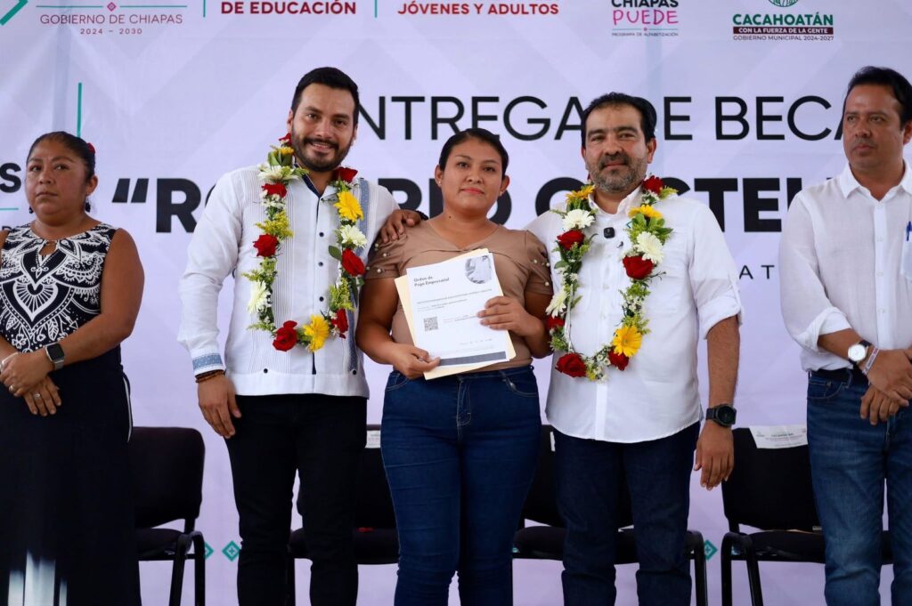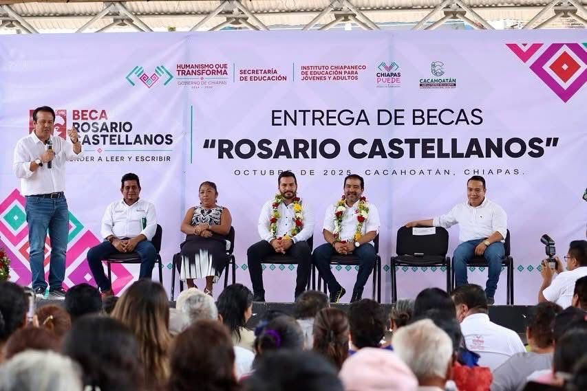 Hace unos momentos, acompañé a mi amigo Sergio David Molina Gómez, Director General del ICHEJA, en la entrega de becas “Rosario Castellanos” a 400 beneficiarias y beneficiarios del programa de alfabetización #ChiapasPuede, en el municipio de Cacahoatán, programa que es encabezado e impulsado por nuestro gobernador Eduardo Ramírez.