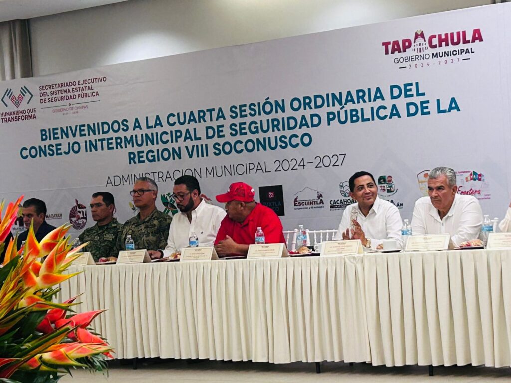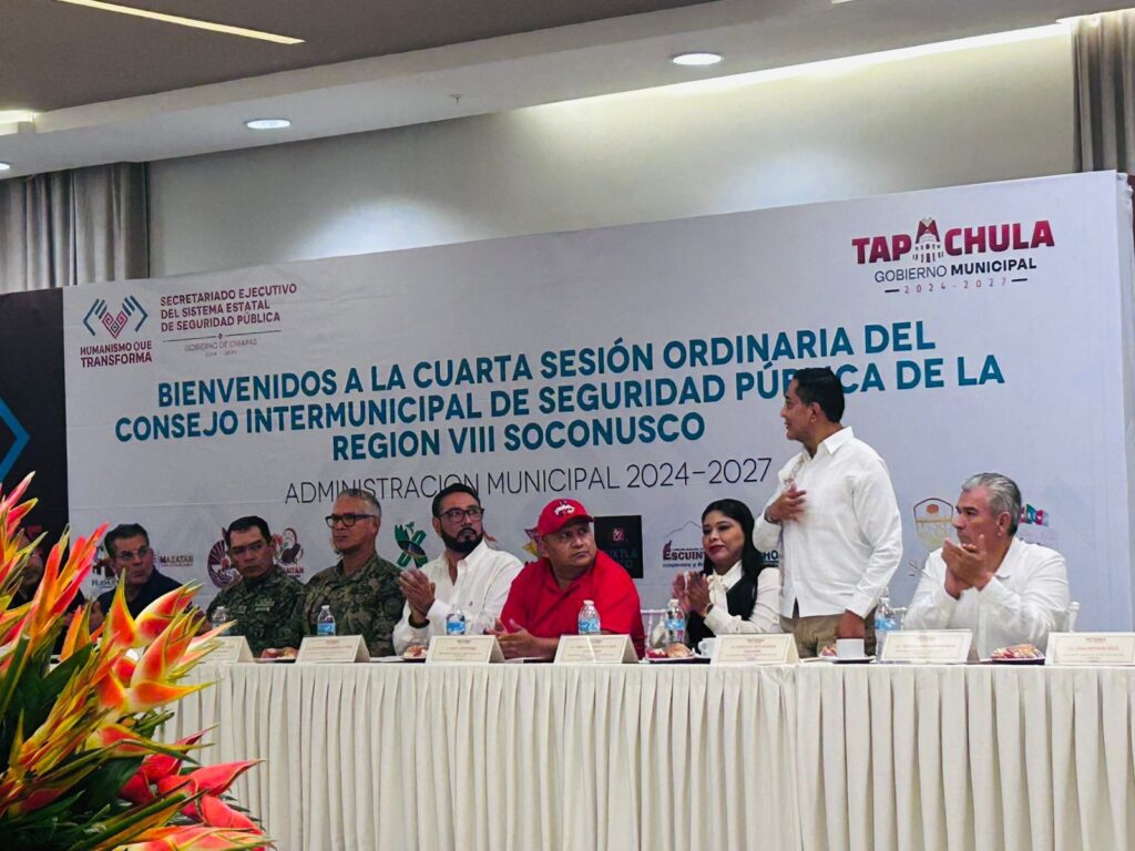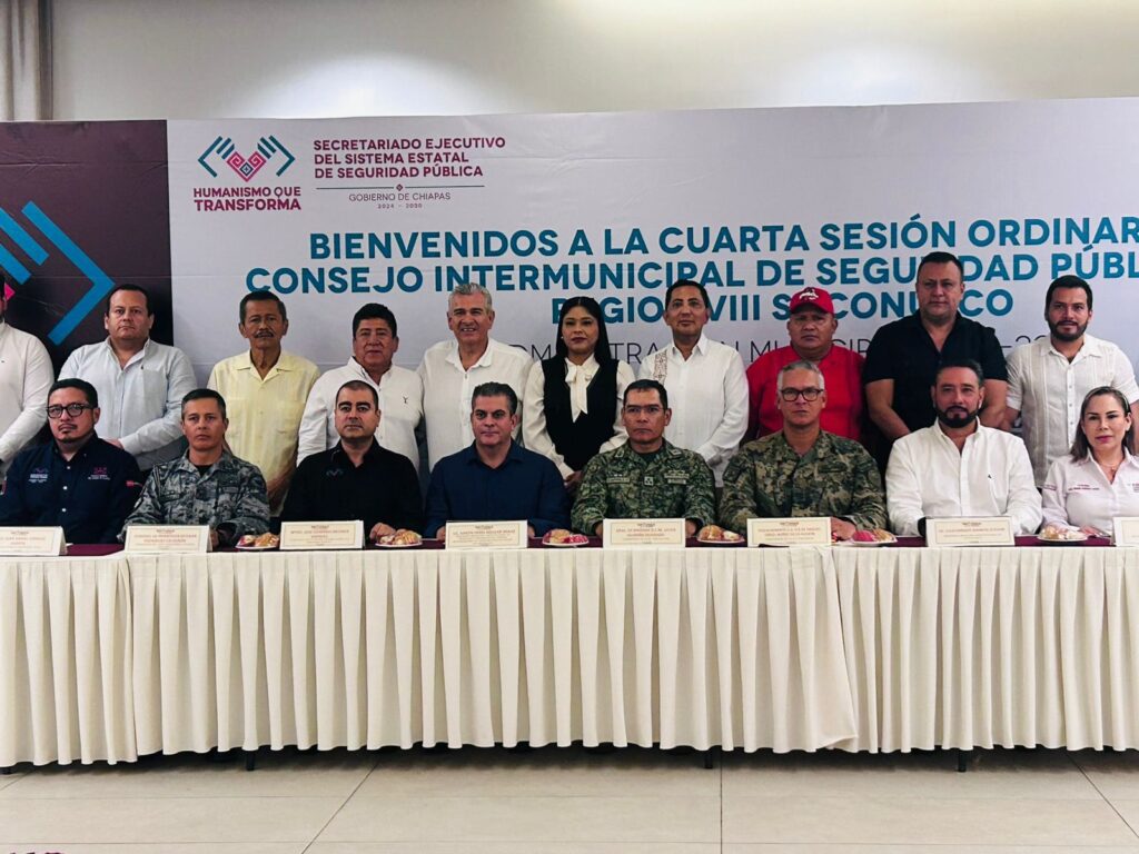 Suchiate, Chiapas.– El presidente municipal, Elmer de Jesús Vázquez Gallardo, participó en la 4ª Sesión Ordinaria del Consejo Intermunicipal de Seguridad Pública de la Región VIII Soconusco, donde se reafirmó que la seguridad es una prioridad que debe atenderse con responsabilidad y coordinación entre los tres niveles de gobierno.