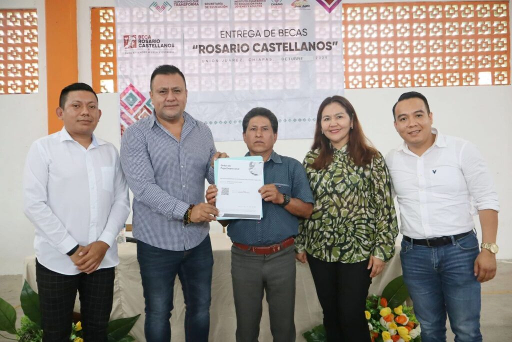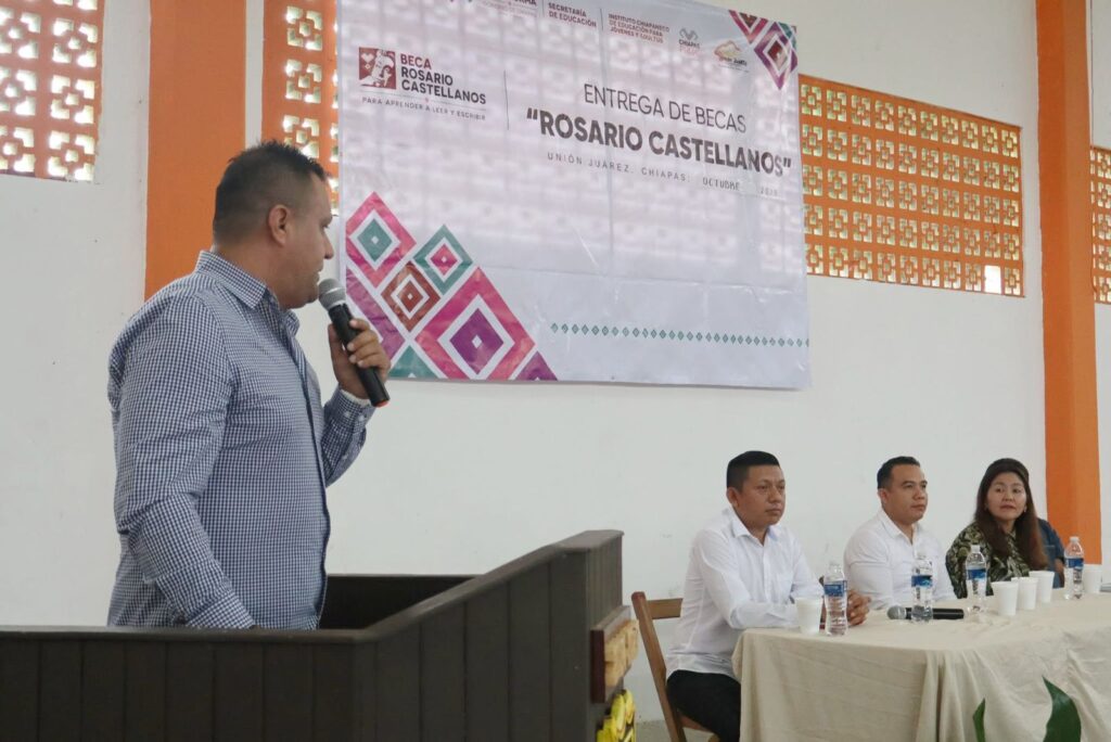 La educación continúa siendo una de las prioridades en el municipio de Unión Juárez, afirmó el alcalde Fabián Barrios de León, durante la entrega de becas “Rosario Castellanos” a pobladores que forman parte del Programa de Alfabetización “Chiapas Puede”.
