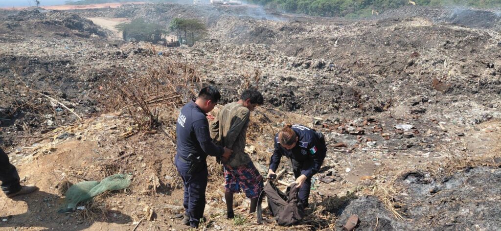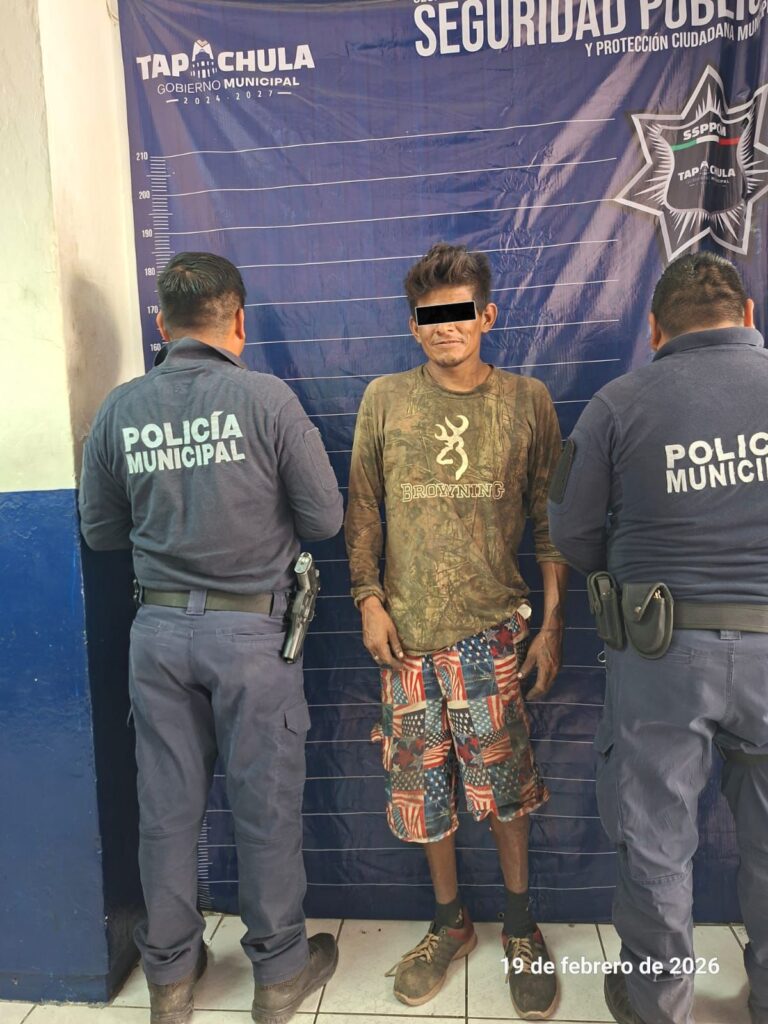 Tapachula, Chiapas; 19 de febrero de 2026.— La Secretaría de Seguridad Pública y Protección Ciudadana Municipal informó que, derivado de los rondines permanentes de vigilancia y de la oportuna intervención del personal que labora en el nuevo Centro de Disposición Final de Residuos Sólidos, fue detenido un hombre cuando intentaba provocar nuevamente un incendio al interior del basurero municipal.