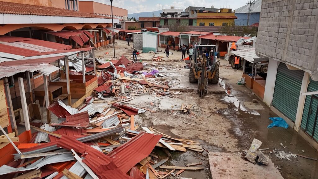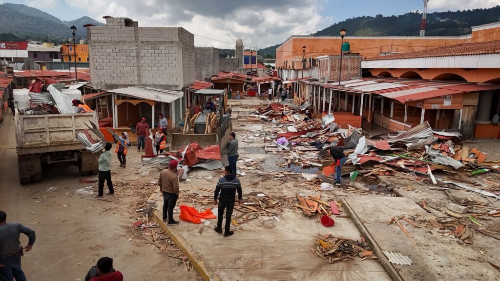 San Cristóbal de Las Casas, 28 de octubre de 2025.– En un operativo realizado con total calma y orden, el Ayuntamiento de San Cristóbal de Las Casas, a través de la administración del Mercado del Norte, llevó a cabo el retiro de puestos abandonados e instalaciones colocadas de manera ilegal en los alrededores del inmueble que eran espacio de estacionamiento y banquetas.