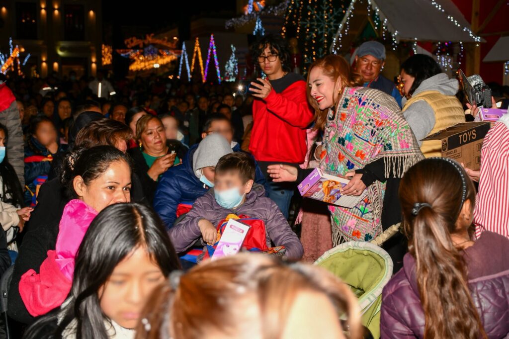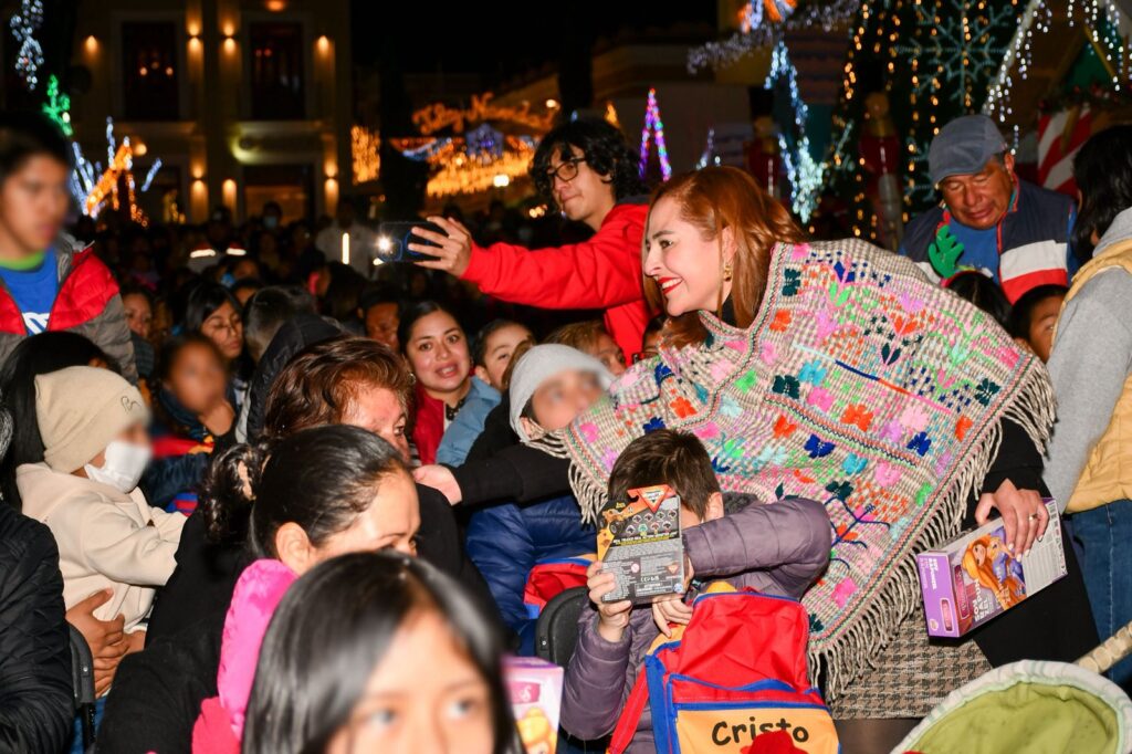 San Cristóbal de Las Casas, 06 de enero de 2026.– La presidenta municipal, Mtra. Fabiola Ricci Diestel, y la presidenta honoraria del DIF Municipal, Bertha Guadalupe Diestel Alfaro, encabezaron la celebración del Día de Reyes Magos en el Parque Central, acompañadas por regidoras, regidores y cientos de familias sancristobalenses, quienes convivieron con los Reyes Magos y disfrutaron de un espectáculo infantil.