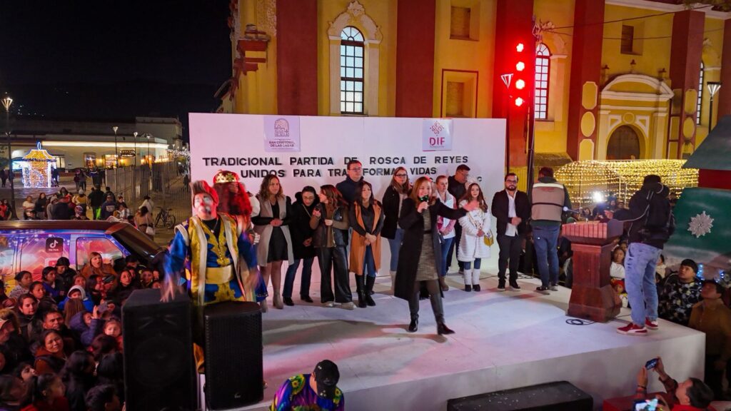 Como parte de la celebración, se realizó la partida de una Rosca de Reyes de 300 metros, elaborada por el DIF Municipal, que incluyó más de 700 muñequitos y la entrega de obsequios. Además, se anunció que el próximo sábado se llevará a cabo una actividad dedicada a la niñez sancristobalense, por lo que se invitó a la ciudadanía a pasar por sus boletos a partir de este jueves, en horarios de oficina, para participar en las rifas.