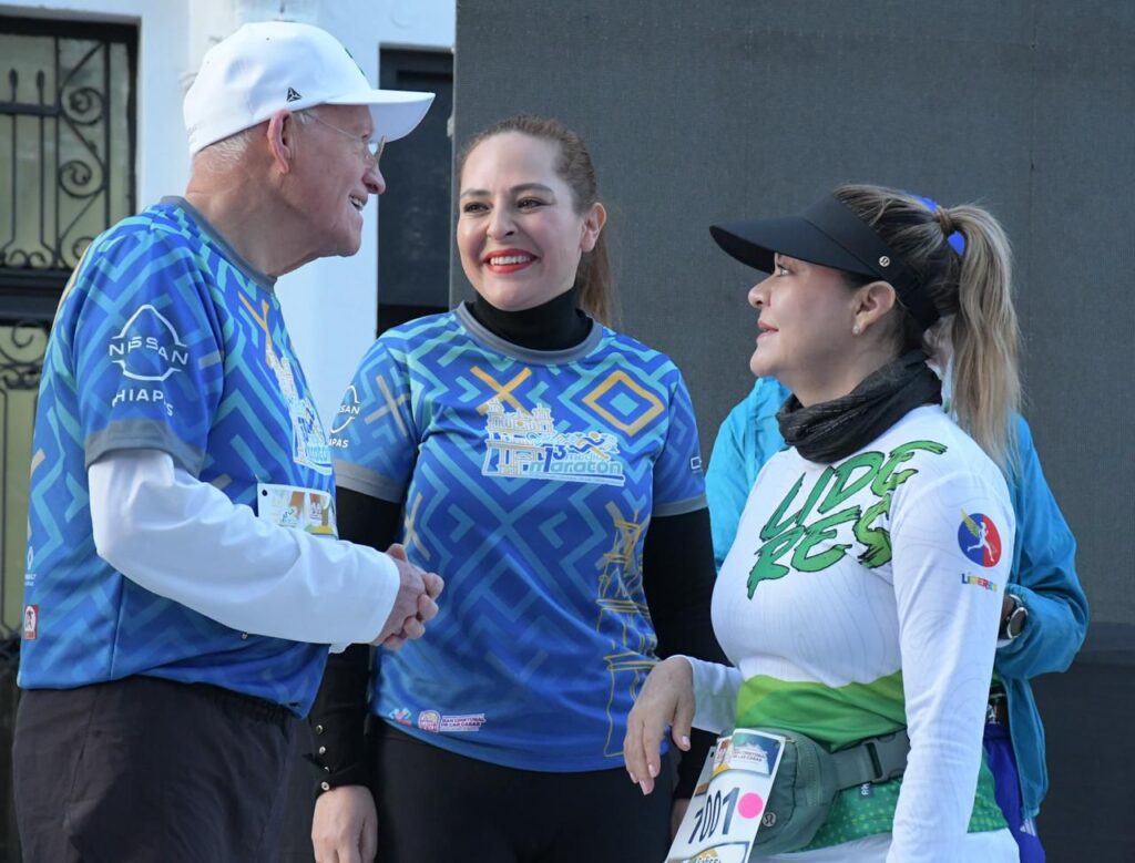 San Cristóbal de Las Casas, 01 de marzo de 2026.– Con la participación de autoridades civiles y religiosas, se dio el banderazo de inicio del 13.º Medio Maratón en esta ciudad cultural, encabezado por la esposa del gobernador de Chiapas, Sofía Espinosa Abarca, la presidenta municipal Fabiola Ricci Diestel y el obispo de la diócesis, Rodrigo Aguilar Martínez.