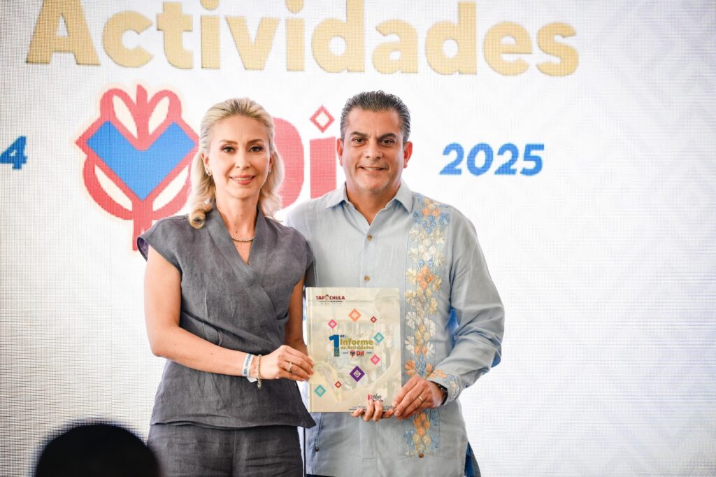 Luego de atestiguar el Primer Informe de Actividades correspondiente al periodo octubre de 2024 a septiembre de 2025, presentado por la presidenta honorífica del Sistema DIF Tapachula, Beba Pedrero, el alcalde Yamil Melgar, resaltó que se trabaja con voluntad para servir a Tapachula.