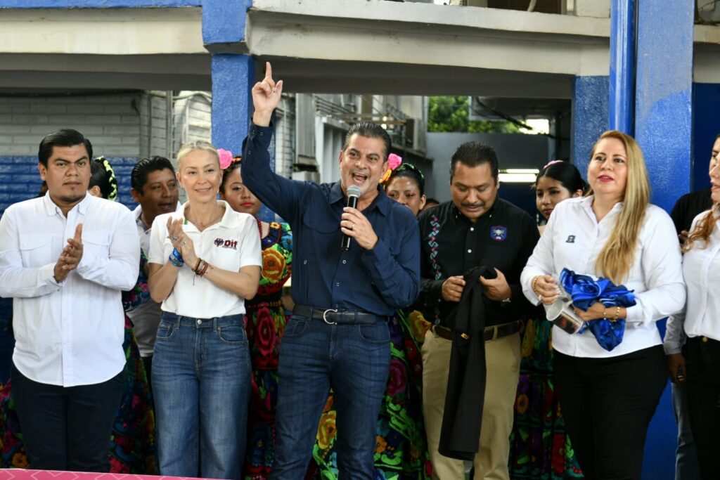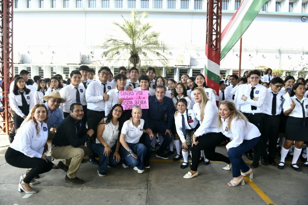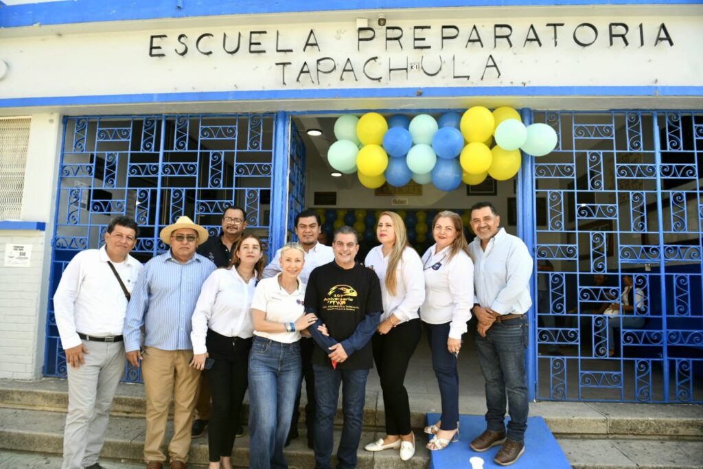 Acompañado por la presidenta honorífica del SDIF Tapachula, Beba Pedrero, el edil destacó que su gobierno trabaja de manera permanente en la dignificación de los espacios educativos, priorizando acciones que impacten directamente en la calidad de vida de las y los estudiantes.