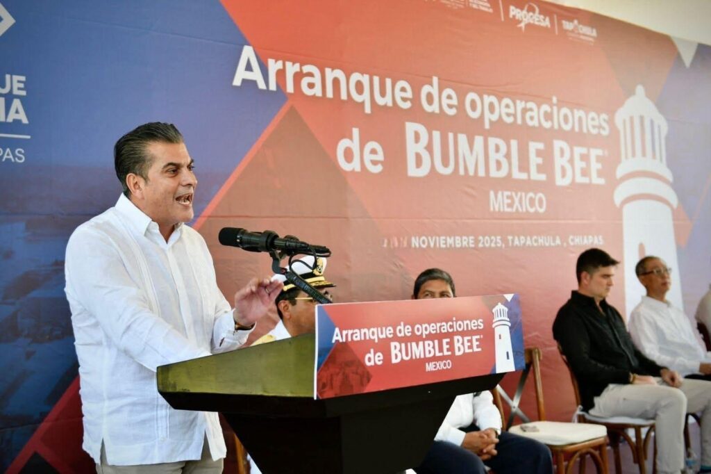 21 de noviembre 2025, Tapachula, Chiapas.- El presidente municipal de Tapachula, Yamil Melgar Bravo, asistió al inicio de operaciones de la planta Bumble Bee México, en Puerto Chiapas, la cual va a generar 3 mil empleos directos durante el proceso de inversión, que se traducen en seguridad y bienestar para el municipio y la región Soconusco.
