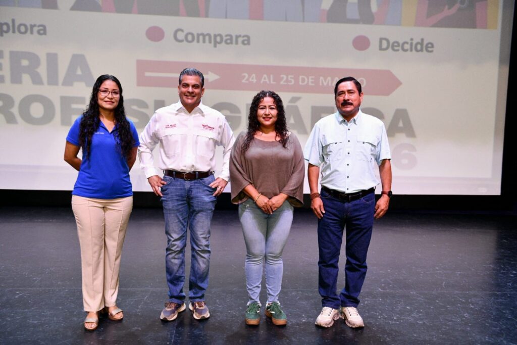 25 de marzo de 2026, Tapachula, Chiapas.– Con un llamado a convertirse en profesionistas responsables y comprometidos con su comunidad, el alcalde de Tapachula, Yamil Melgar Bravo, asistió a la conclusión de la 2da. Feria Profesiográfica con Preparatorias del Estado, realizada durante dos días en el Teatro de la Ciudad “Amparo Montes”.