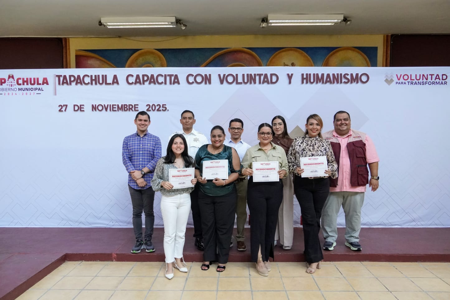 TAPACHULA, CHIAPAS – 27 de noviembre 2025. El Ayuntamiento de Tapachula, a través de la Oficialía Mayor y el Departamento de Capacitación y Desarrollo Municipal, llevó a cabo con éxito la clausura de la Jornada de Capacitación “Tapachula Capacita con Voluntad y Humanismo” el pasado 27 de noviembre de 2025. Durante la emotiva ceremonia, los servidores públicos recibieron constancias y reconocimientos por su compromiso en la inversión de tiempo y esfuerzo en su desarrollo personal y profesional, con el objetivo de servir a la ciudadanía con excelencia y calidez.