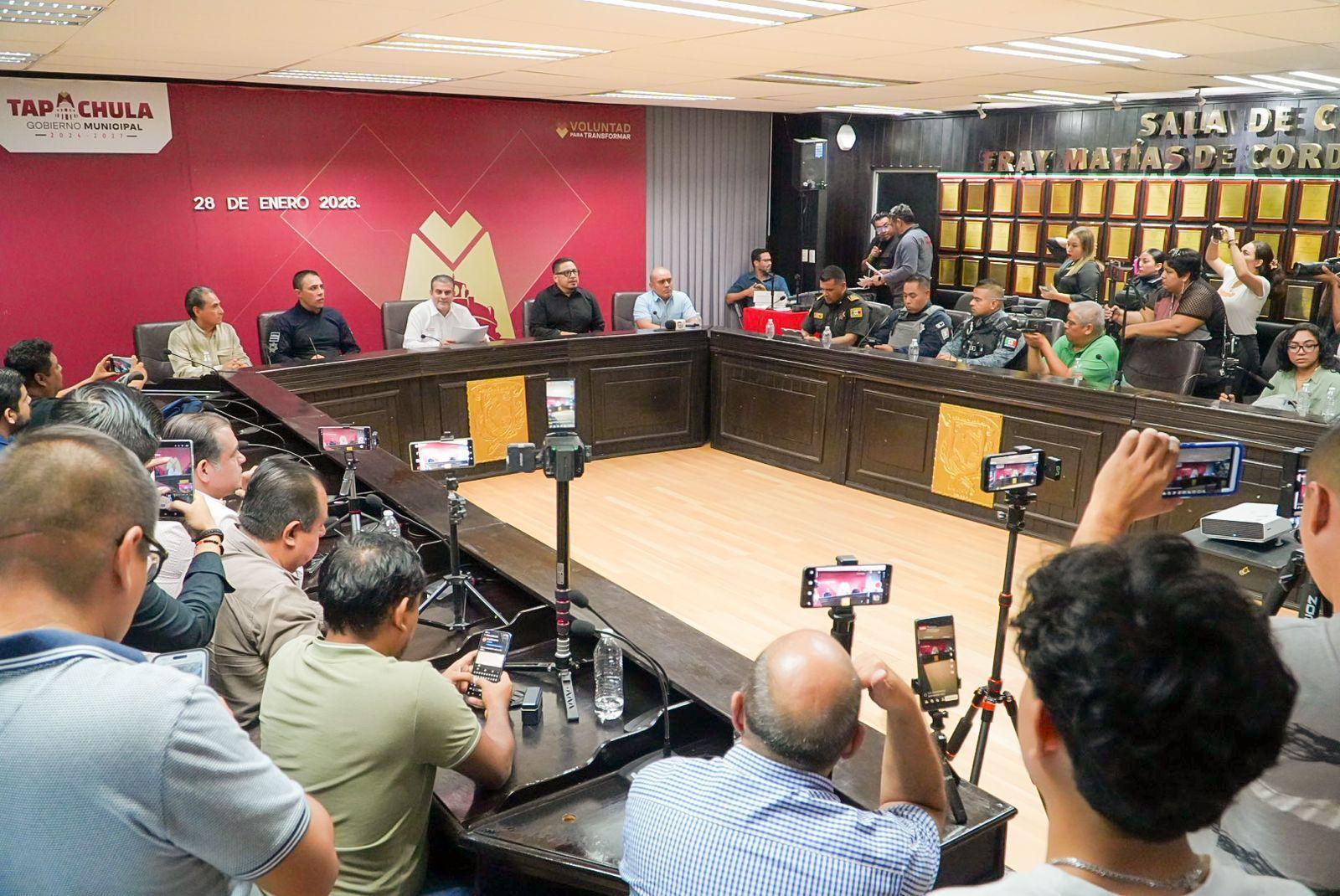 28 de enero de 2026, Tapachula, Chiapas.— Gracias al trabajo coordinado de las instituciones de seguridad de los tres órdenes de gobierno, Tapachula ocupa el lugar número 28 de 50 municipios con menor percepción de inseguridad, de acuerdo con los resultados de la Encuesta Nacional de Seguridad Pública Urbana (ENSU) realizada recientemente por el INEGI, destacó el presidente municipal de Tapachula, Yamil Melgar Bravo, durante una conferencia de prensa.