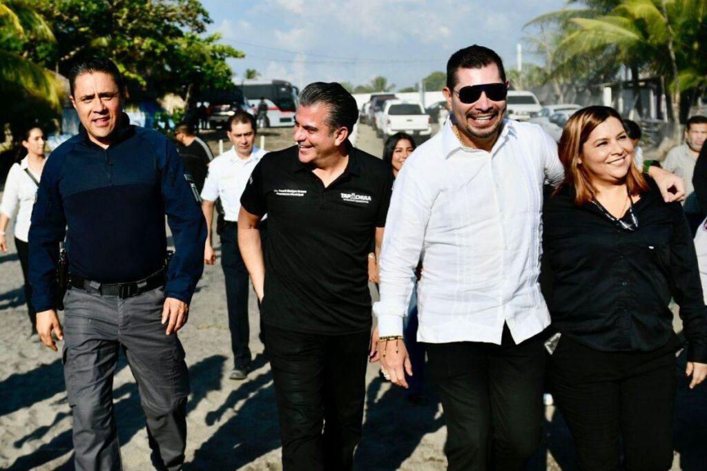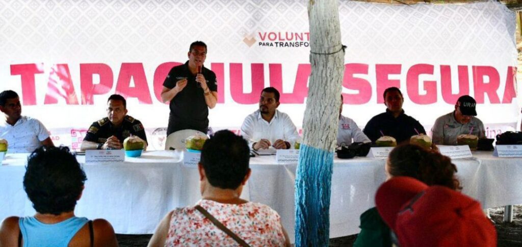 20 de noviembre 2025, Tapachula, Chiapas.- El presidente municipal de Tapachula, Yamil Melgar Bravo y el secretario de Seguridad del Pueblo del estado de Chiapas, Óscar Alberto Aparicio Avendaño, sostuvieron un encuentro con palaperos de Puerto Madero como parte de las acciones del programa Tapachula Segura.