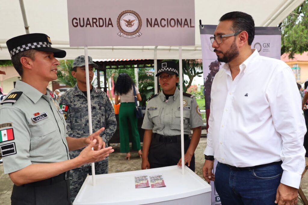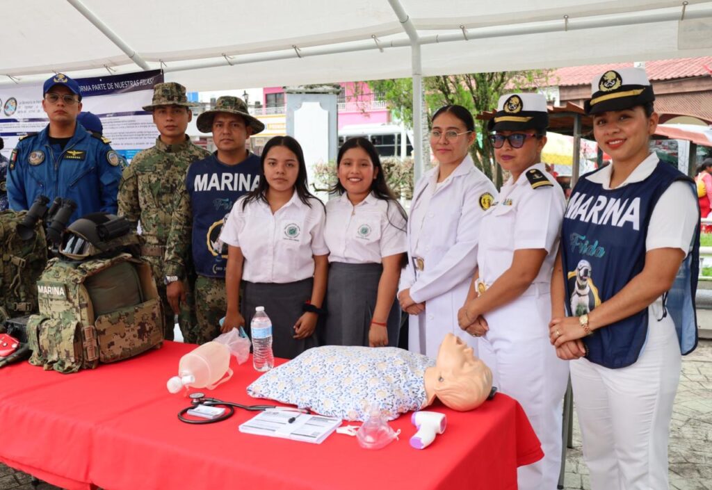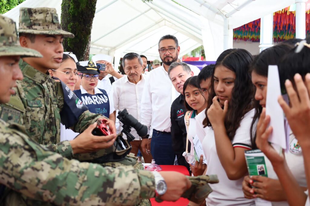• Cientos de estudiantes abarrotaron el parque central, para conocer el trabajo que realizan la SEDENA, Marina Armada de México, Guardia Nacional, Fiscalía General del Estado, Secretaría de Seguridad del Pueblo, entre otras.