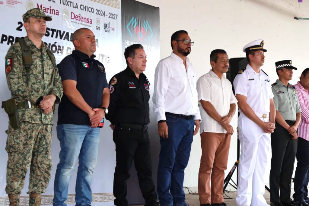 En el 2do. Festival de la Prevención del Delito se contó con la asistencia del Teniente Coronel Jacob Granalda, representante de la 36ª Zona Militar; Teniente de Navío C.G. Javier Téllez Ruiz representante de la 22 Región Naval; Teniente de Fragata Erick Mondragón de la Torre, director del Centro de Control Comando Comunicación y Computo C-5; Capitán 1ro. Emmanuel Peña Espinoza, representante del 43 Batallón Guardia Nacional; José Antonio López Ruiz, presidente del Comité de Consulta y Participación Ciudadana de Tuxtla Chico; Martiniano Reyes Palacios, subsecretario de Gobierno de la representación Regional Soconusco; Dr. Jaime Ordoñez Granja, Jefe de la Jurisdicción Sanitaria VII ; Marisol Cancino Cruz representante del IMSS Bienestar Tuxtla Chico ; Pablo Esquinca Ávila, director del CENTRA; Inspector Tomas Hernández Ortiz, delegado de la Guardia Estatal Vial Preventiva ; Miguel Ángel Pérez de la Cruz, delegado Regional VIII Soconusco del Secretariado Ejecutivo del Sistema Estatal de Seguridad Pública y directores de instituciones escolares.