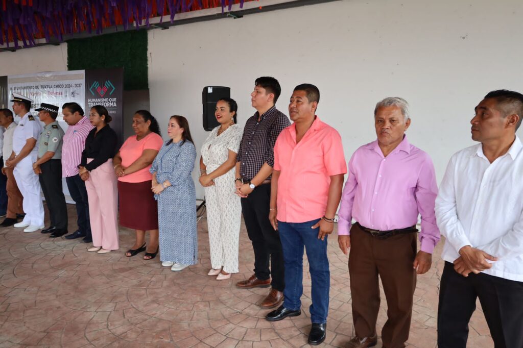 El alcalde Julio Gamboa junto al coordinador de la Mesa de Seguridad Regional para la Reconstrucción de la Paz, Gustavo Adolfo López Farías, y el Lic. Víctor Manuel Chacón Rojas quien acudió en representación de la directora general del Centro Estatal para la Prevención Social de la Violencia y Participación Ciudadana, Yolanda María Alfaro Pérez, destacó que desde Tuxtla Chico se continuará fortaleciendo la cultura de paz, iniciativa del Gobernador, Eduardo Ramírez Aguilar, para fortalecer la comunidad educativa. Agradeció el acuerpamiento de las Fuerzas Armadas.