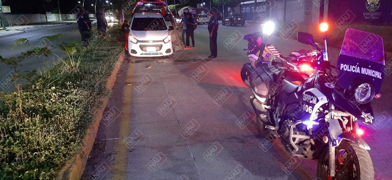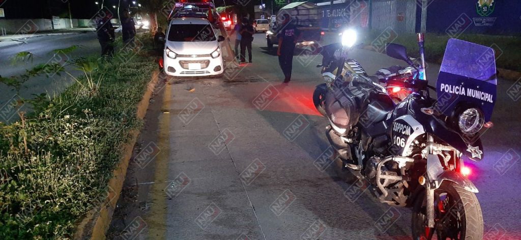 Automóvil Chevrolet Beat, de color blanco, se encontraba en sentido contrario, sobre el camellón central, el conductor sacó los documentos y posteriormente se dio a la fuga con rumbo desconocido.