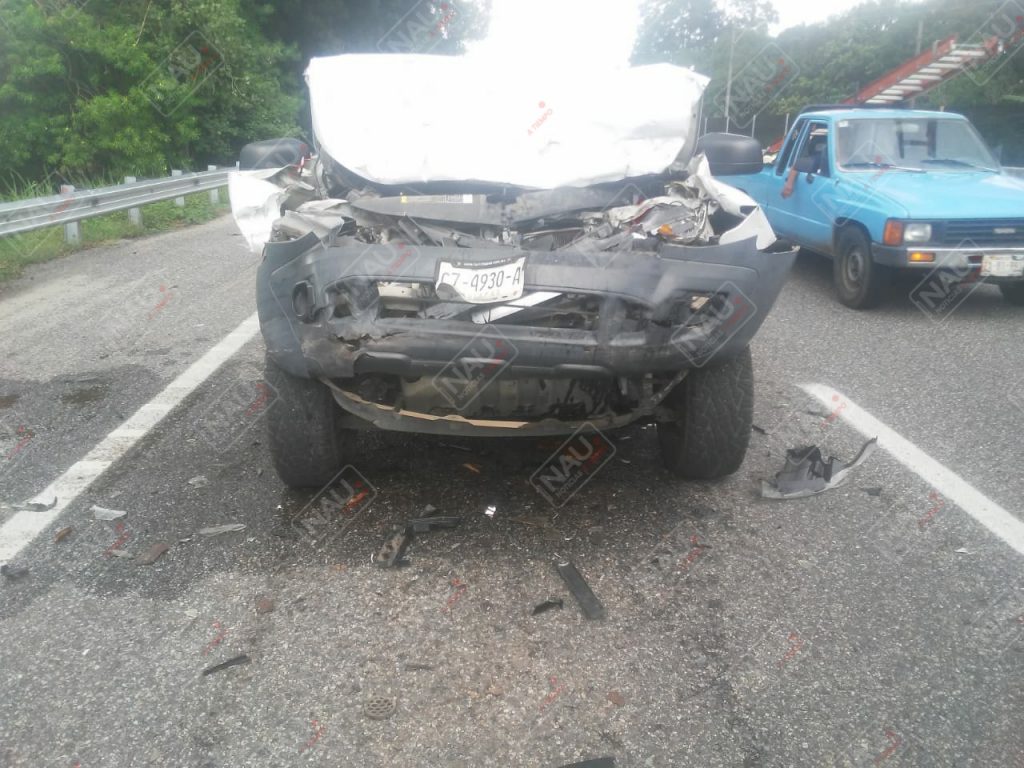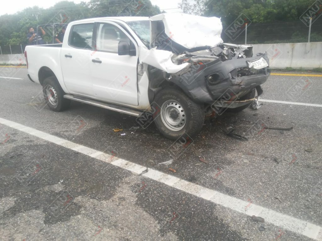 Tuzantán, Chiapas. Una camioneta Ranger de color blanco, con placas del estado de Chiapas, chocó por alcance contra un tráiler que no detuvo su marcha, sobre la carretera Tapachula – Huixtla, a la altura de la entrada a la ampliación cruz de oro municipio de Tuzantán.