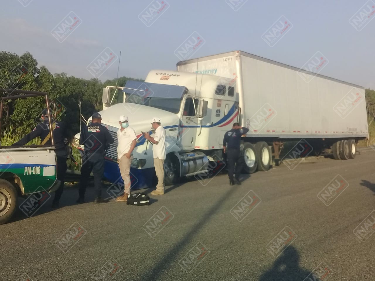 En el lugar no se localizó al conductor, por lo que el tráiler fue puesto a disposición de un fiscal del ministerio público, como vehículo abandonado.