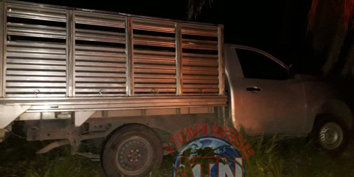 El vehículo es una camioneta estaquitas color gris, con placas CX22797 del estado de Chiapas, Nissan NP300, que se encontraba fuera de la carretera, en sentido opuesto en el carril de Tapachula a Puerto Chiapas.