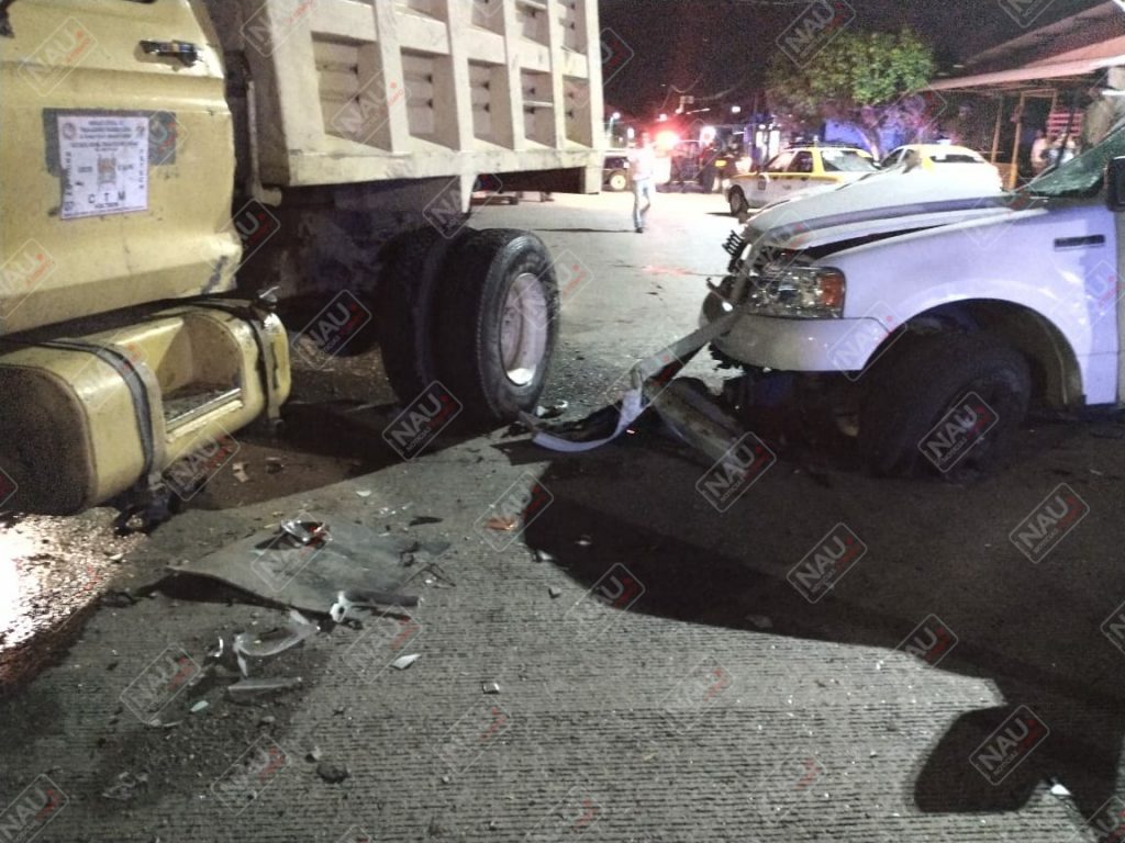 Abandonan vehículo tras chocar con un camión de volteo estacionado