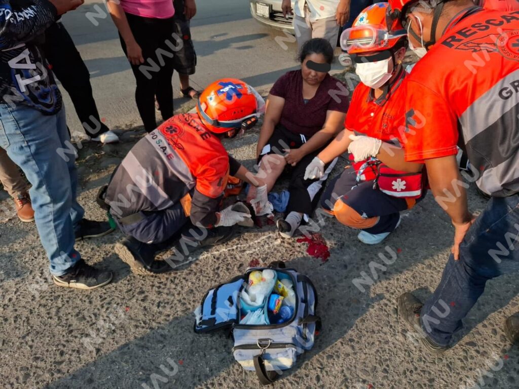 En el mismo sitio fue atendida Guadalupe “N”, de aproximadamente 42 años de edad, quien permanecía sentada sobre el pavimento al momento del arribo de los cuerpos de auxilio. La mujer presentaba una herida con sangrado activo y posible fractura en tibia y peroné en el tercio distal derecho. También registraba alteraciones en sus signos vitales, por lo que los socorristas aplicaron control de hemorragia, monitoreo y la correspondiente inmovilización.