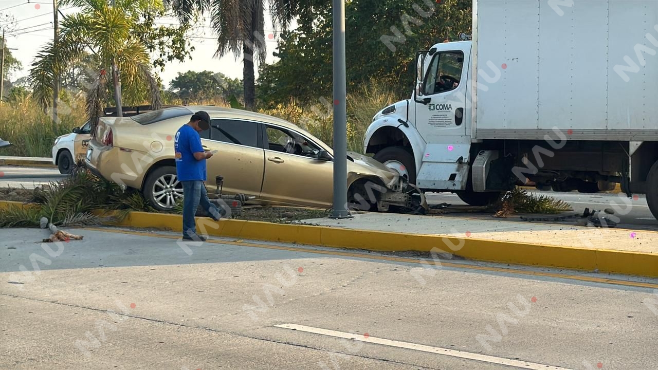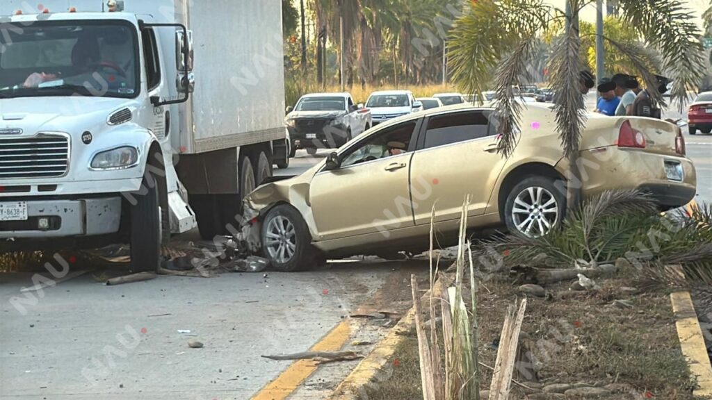 De acuerdo con los primeros reportes, un vehículo Chevrolet Malibú que transitaba de oriente a poniente, presuntamente a exceso de velocidad, perdió el control del volante, salió de la cinta asfáltica y terminó sobre el camellón central, donde derribó al menos tres palmeras y una lámpara de alumbrado público.