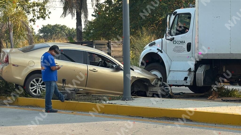 Tras el impacto, el automóvil se estrelló contra un camión de tres toneladas, color blanco, con cabina y caja del mismo color. Como resultado del choque, los ocupantes del Malibú resultaron lesionados, entre ellos dos menores de edad, quienes fueron atendidos en el lugar por los cuerpos de auxilio.