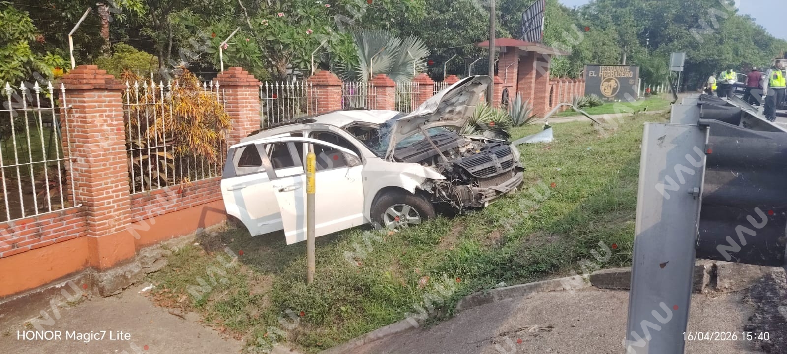 Tras el fuerte choque, el vehículo dio al menos dos volteretas antes de quedar nuevamente sobre sus cuatro llantas. Debido a la magnitud del impacto, una de las ruedas terminó completamente desprendida y la unidad fue declarada como pérdida total.