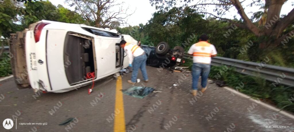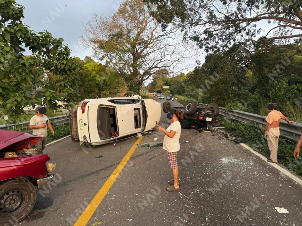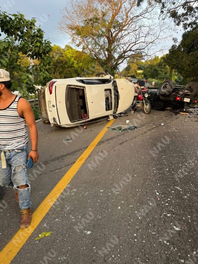 De acuerdo con información recabada en el lugar, el percance involucró una camioneta blanca tipo SUV y una camioneta negra tipo pickup, ambas terminando volcadas, así como una camioneta roja tipo pickup Toyota Tacoma, cabina y media, que quedó con severas afectaciones sobre la carpeta asfáltica y en el acotamiento de la vía.