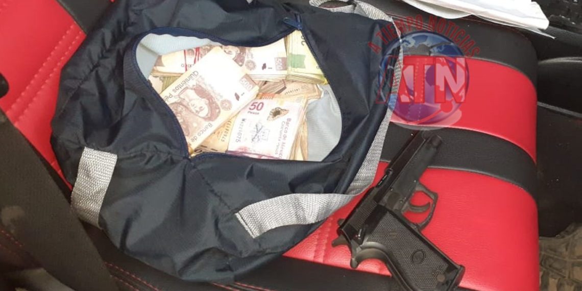 En la bolsa llevaban dinero en billetes en denominación de 200, 500 y 100 pesos, por lo que hizo un total de 750 mil pesos, que pagarían en la tienda, pero debido a la portación de la pistola, quedaron a disposición de un fiscal del ministerio público federal, donde se les determinará su situación jurídica.