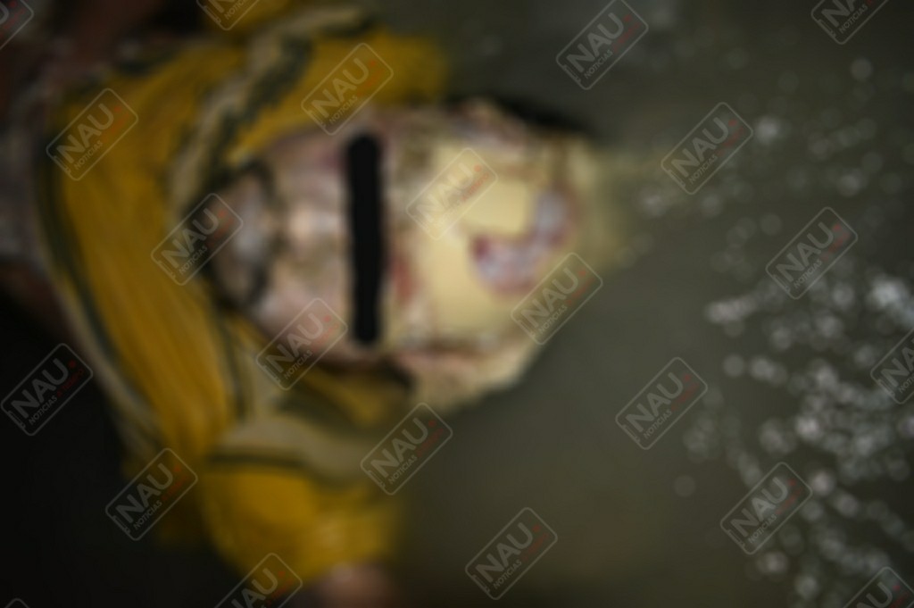 La persona vestía playera en color amarillo con rayas negras, presentaba una lesión en la cabeza, al parecer provocada con arma blanca machete.