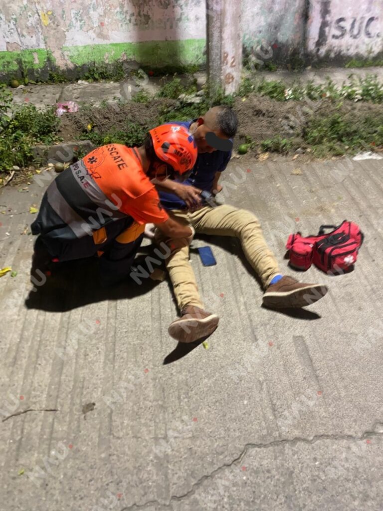 Asimismo, en la prolongación de la 11ª Avenida Sur, colonia Indeco, se registró un accidente vehicular en el que resultó lesionado un motociclista identificado como Ángel “N”, de 18 años de edad. El joven presentaba heridas abrasivas en el brazo derecho, así como probables fracturas en rótula y tobillo izquierdo, por lo que fue inmovilizado y trasladado al Hospital General. Testigos señalaron que el percance ocurrió cuando un vehículo particular le realizó un corte de circulación.