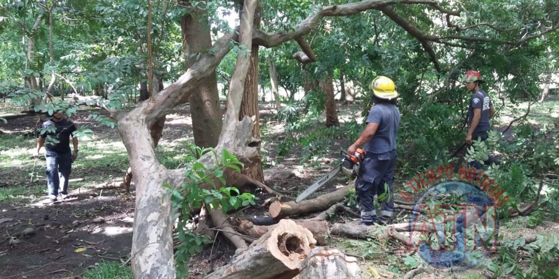 TAPACHULA, CHIAPAS. – Personal del cuerpo de Bomberos de Tapachula, realizaron el retiro de más de 5 árboles en diferentes sectores de Tapachula.