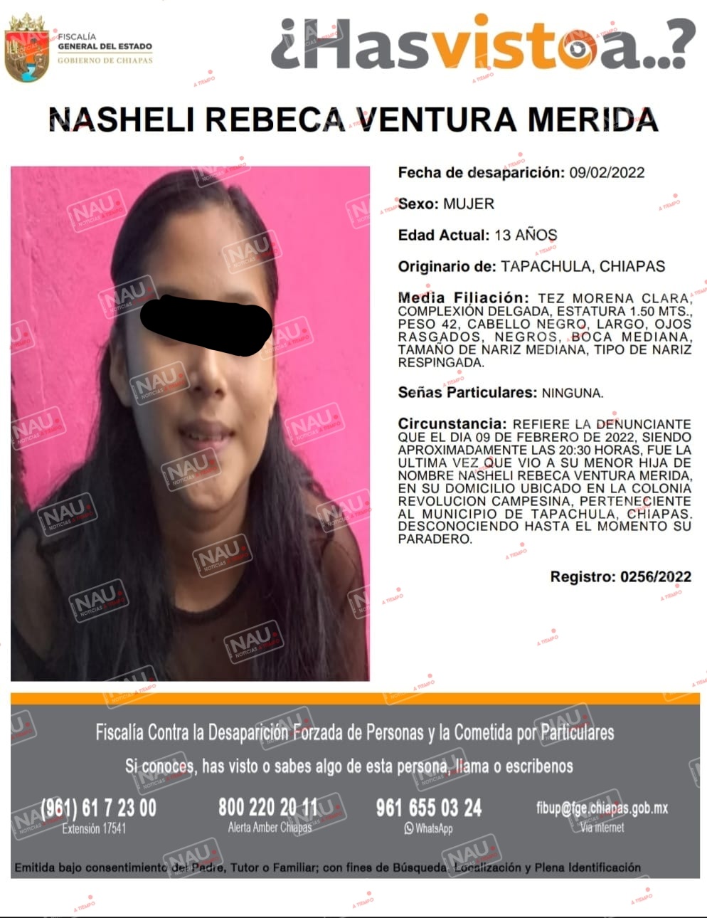 Desde ese momento ya no supieron nada de la niña de 13 años de edad, quién tiene media filiación; tez morena clara, complexión delgada, estatura de 1.50 m, cabello negro largo, ojos rasgados negros, boca mediana, tamaño de nariz mediana, tipo de nariz respingada.