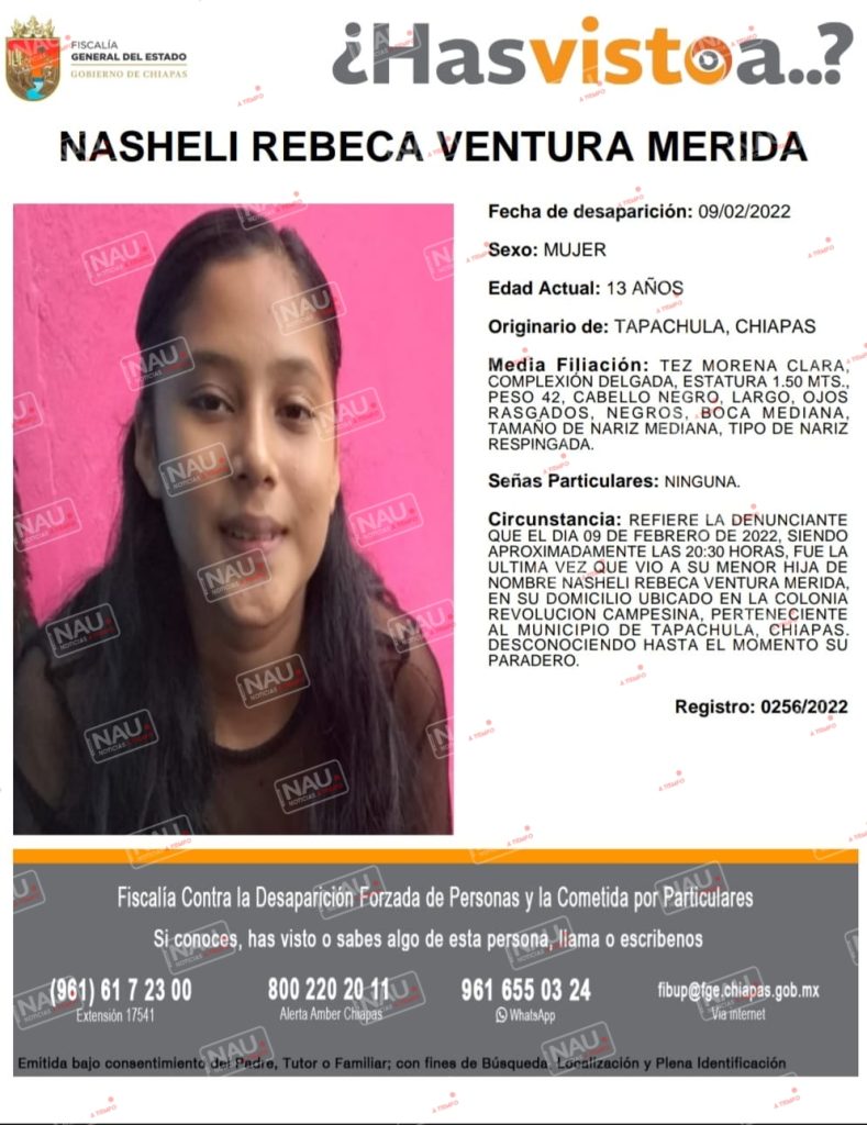 Sobre los hechos, la madre de la menor explicó que su hija Rebeca Ventura Mérida, salió de su domicilio alrededor de las 20:30 horas del pasado miércoles, ubicada en la colonia revolución campesina del municipio de Tapachula.