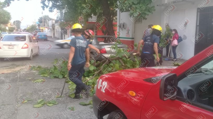 TAPACHULA, CHIAPAS. La rama de un árbol cayó encima de un vehículo que causó daños a un medallón, en la 9ª avenida norte y 3ª calle oriente.