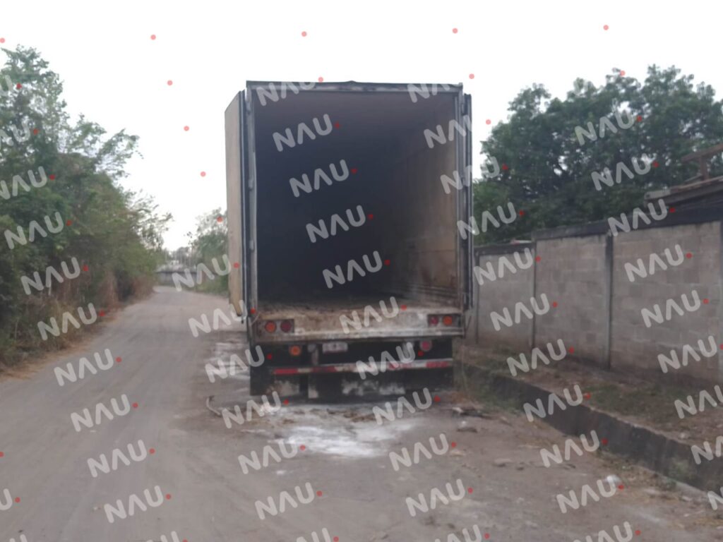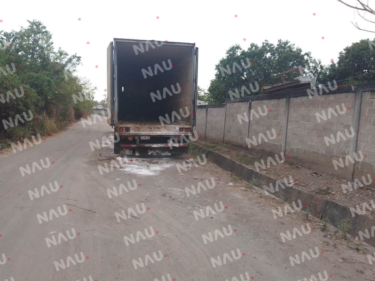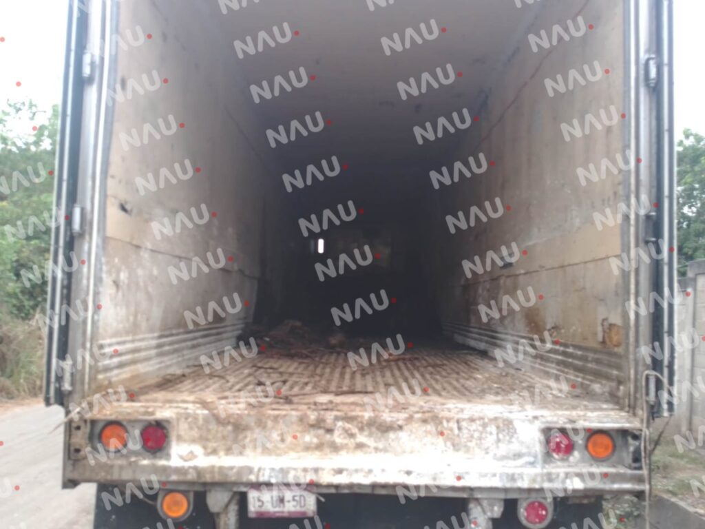 En la caja de tráiler con restos de huesos como de animales, fue llevado hace unos días y se encuentra en la calle, por lo que los habitantes dijeron que si no lo sacan, en la noche le van a prender fuego.