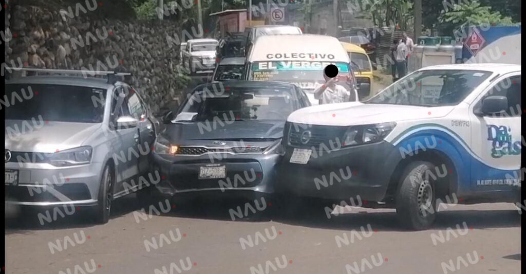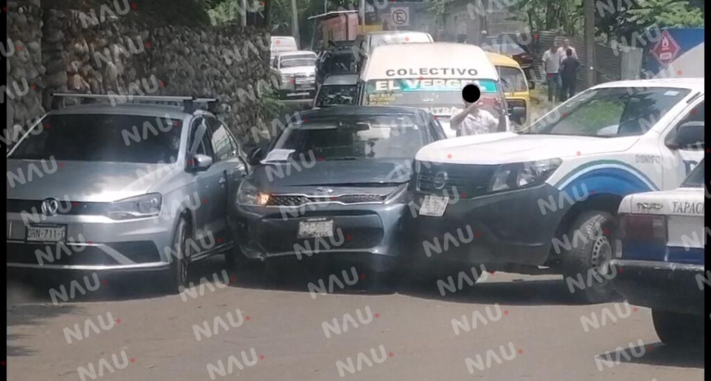 Tapachula, Chiapas. Tres vehículos chocaron sobre la carretera que comunica de Tapachula al ejido 20 de Noviembre, a la altura de la calle Isabel Católica de la colonia El Porvenir.