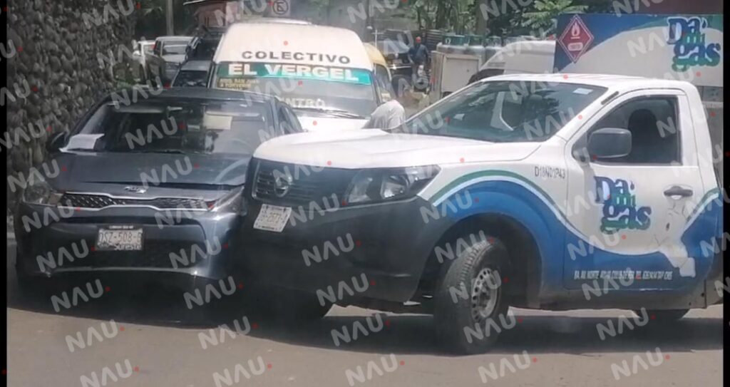 El vehículo Nissan np300 de color blanco, con franjas verdes y azules, en su modalidad de repartidor de gas doméstico, salía de la calle Isabel Católica, al llegar a la carretera principal de Tapachula que comunica al Ejido 20 de Noviembre, impactó contra el costado izquierdo delantero de un automóvil Kia de color gris.