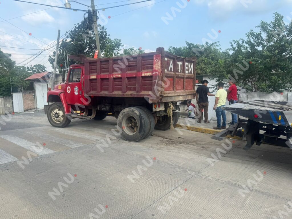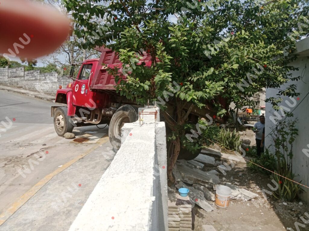 Camión volteo derriba barda y daña inmueble; conductor y propietaria llegan a un acuerdo