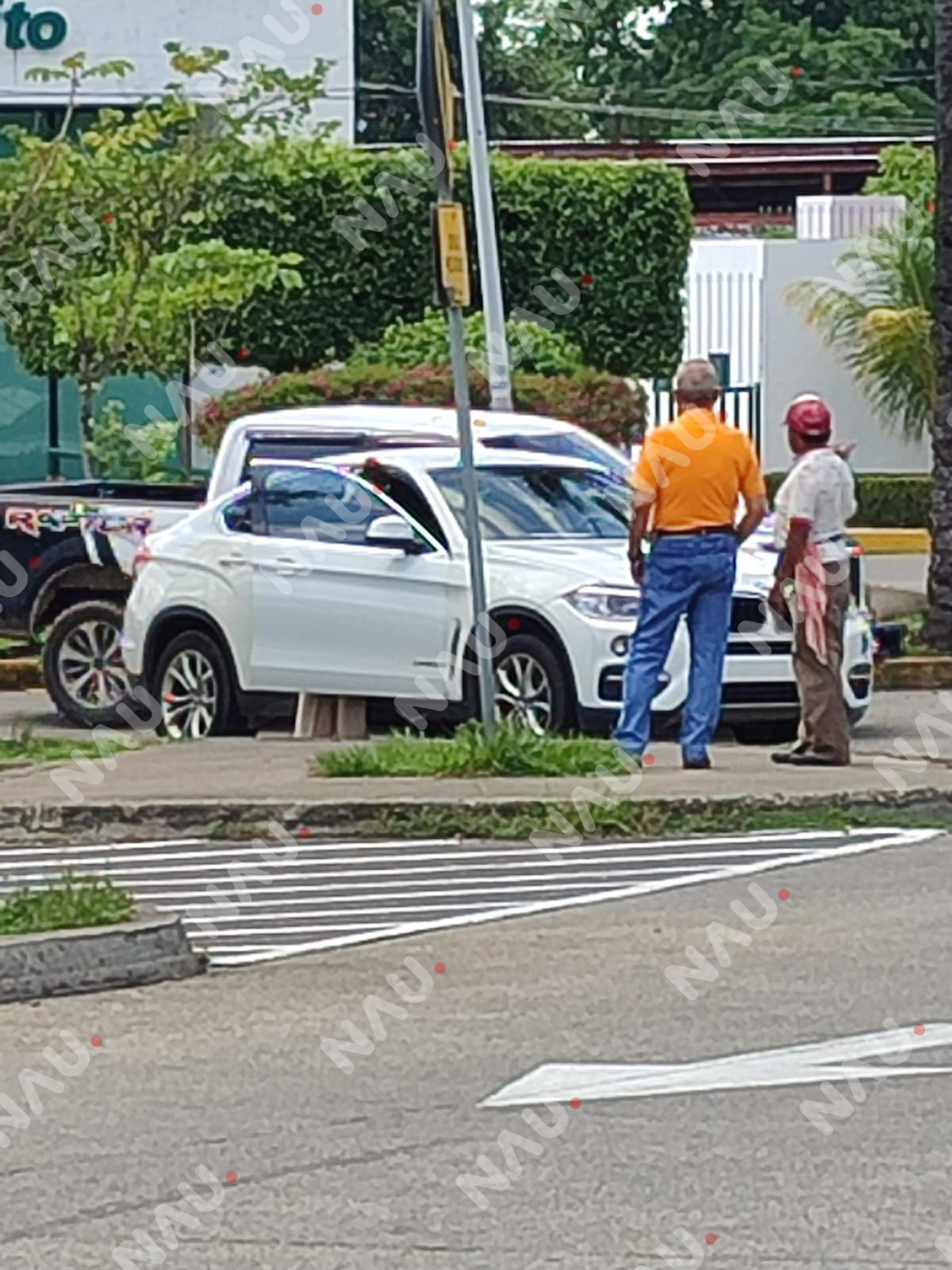 Camioneta BMW y motocicleta protagonizan percance en la Central de Tapachula