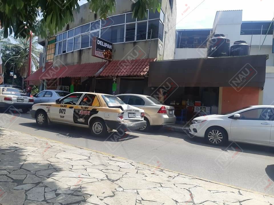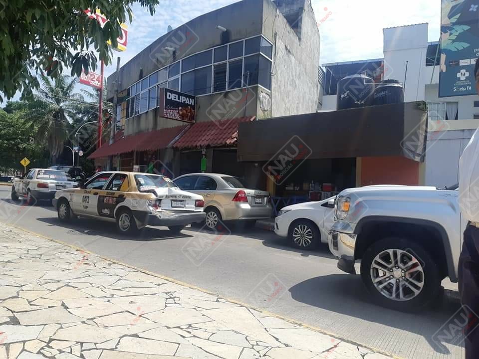 El percance se registró alrededor de las 11:00 de la mañana, luego de que el conductor de un vehículo GMC en color plata, que se desplazaba de sur a norte sobre la avenida las palmas, a la altura de la 2a y 2a calle oriente, no guardó su distancia y chocó por alcance contra el vehículo Nissan Tsuru de color blanco con franjas amarillasn en su modalidad taxi local con número económico 0472 del sitio Colón.