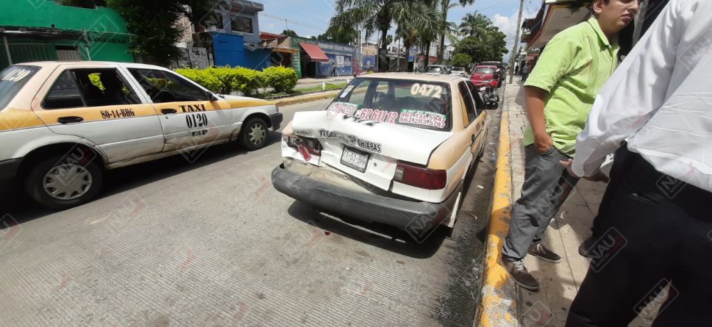 El percance se registró alrededor de las 11:00 de la mañana, luego de que el conductor de un vehículo GMC en color plata, que se desplazaba de sur a norte sobre la avenida las palmas, a la altura de la 2a y 2a calle oriente, no guardó su distancia y chocó por alcance contra el vehículo Nissan Tsuru de color blanco con franjas amarillasn en su modalidad taxi local con número económico 0472 del sitio Colón.